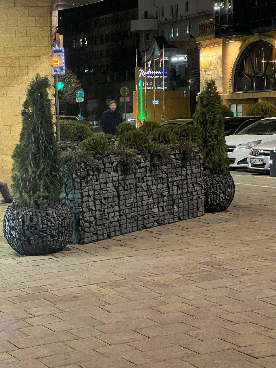 Это основа всей конструкции. В отличие от сетки двойного кручения, сварная сетка обеспечивает более жесткую и геометрически точную форму, что идеально подходит для декоративных конструкций, мебели и вертикальных сооружений.